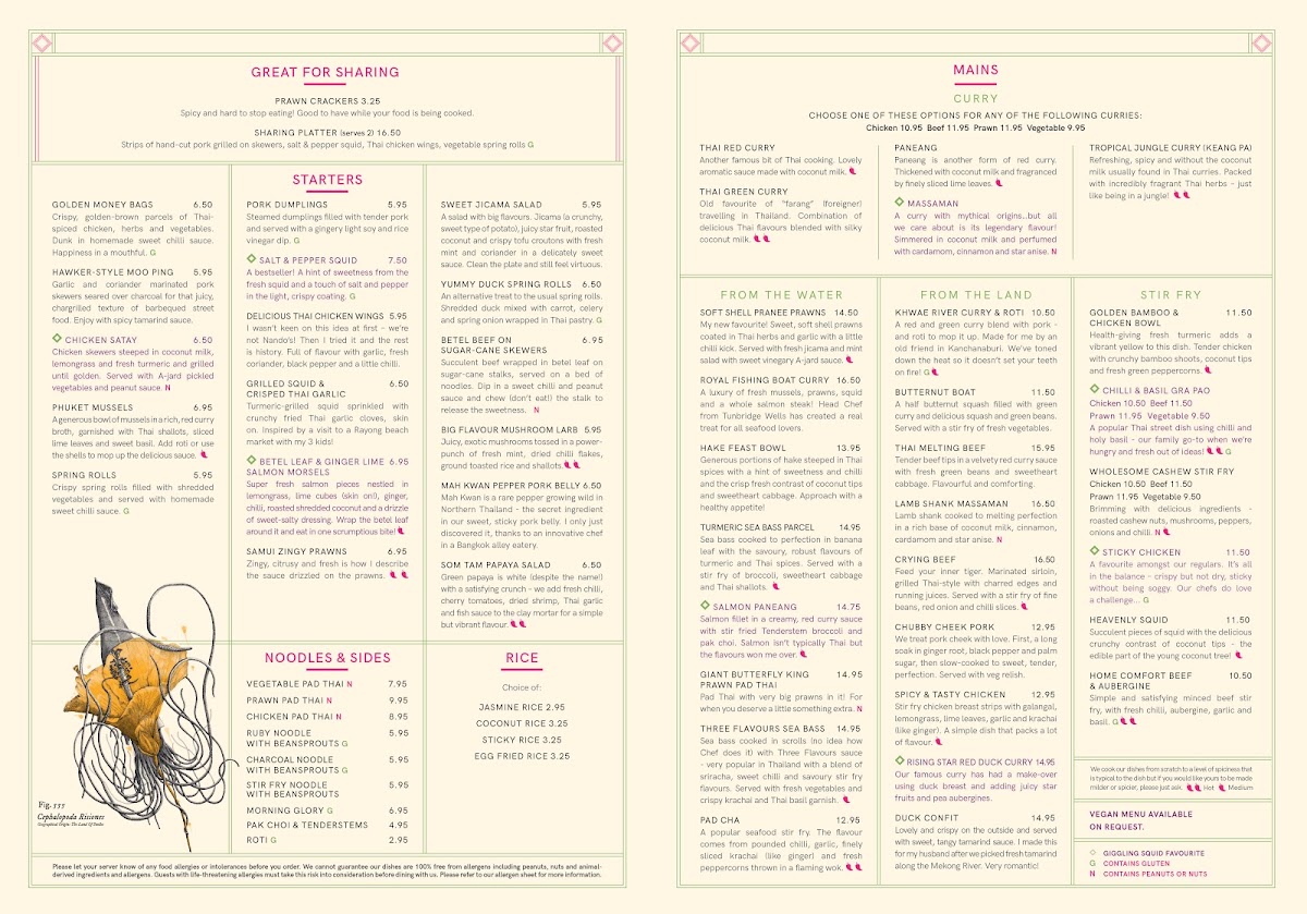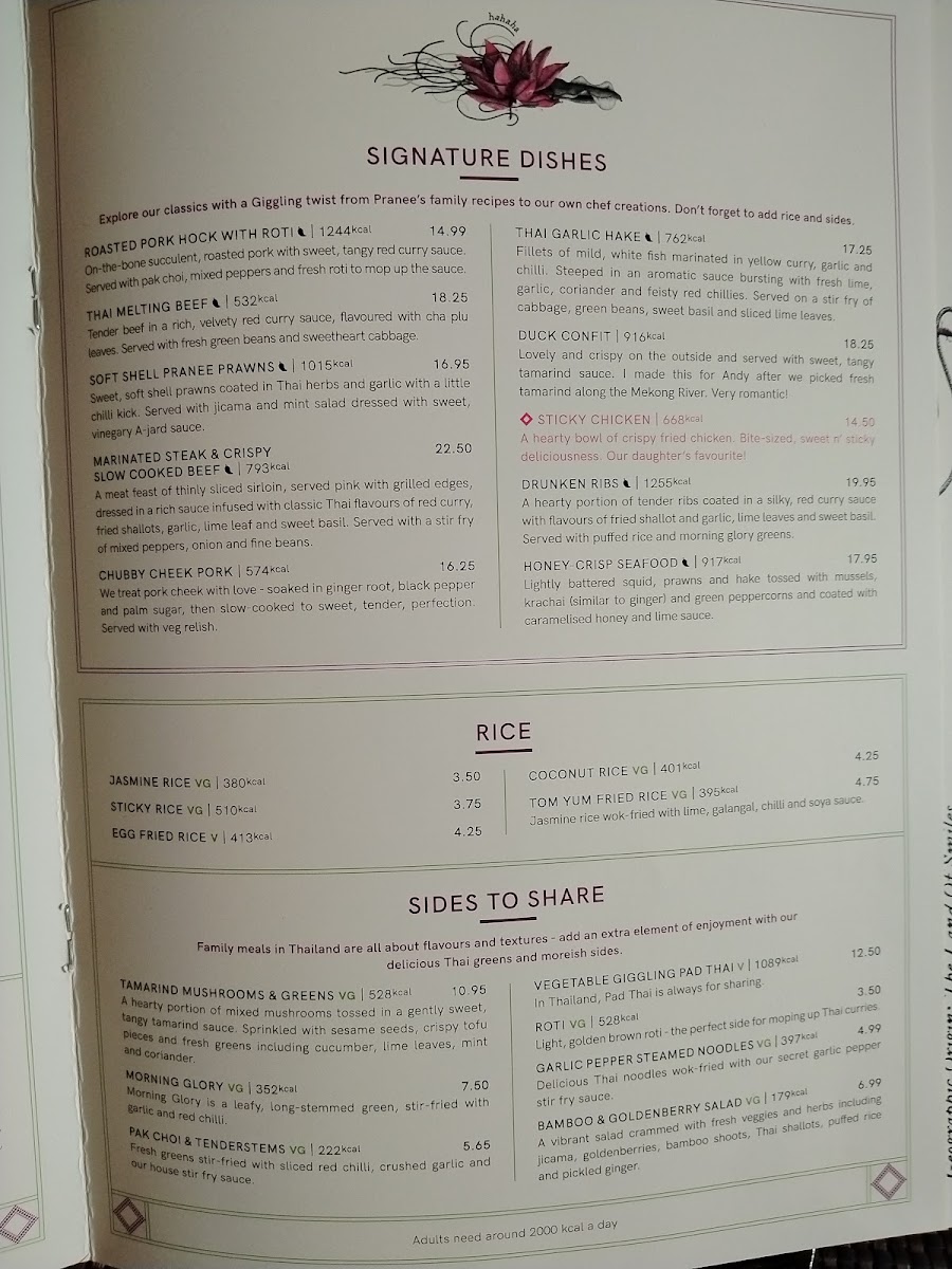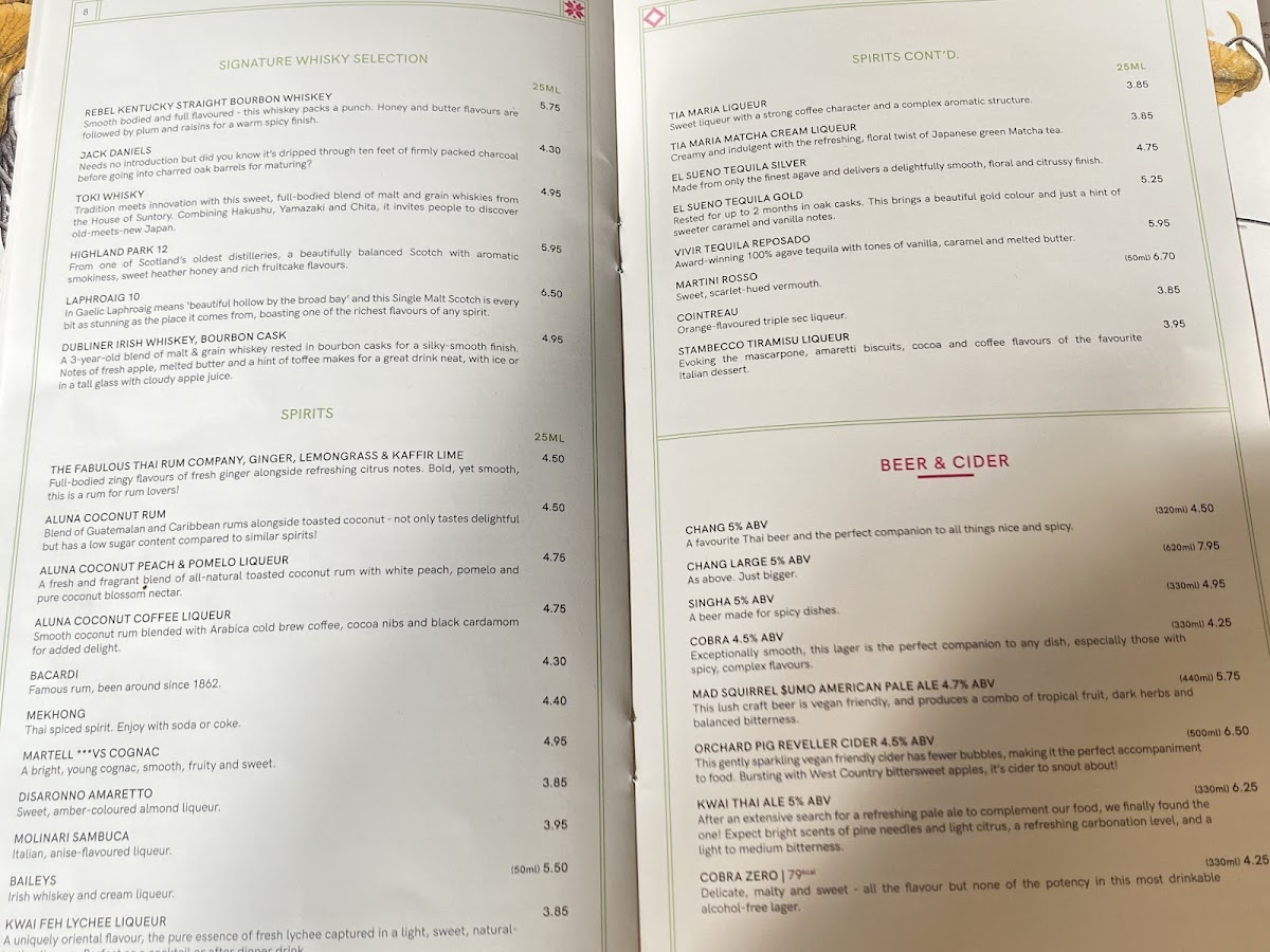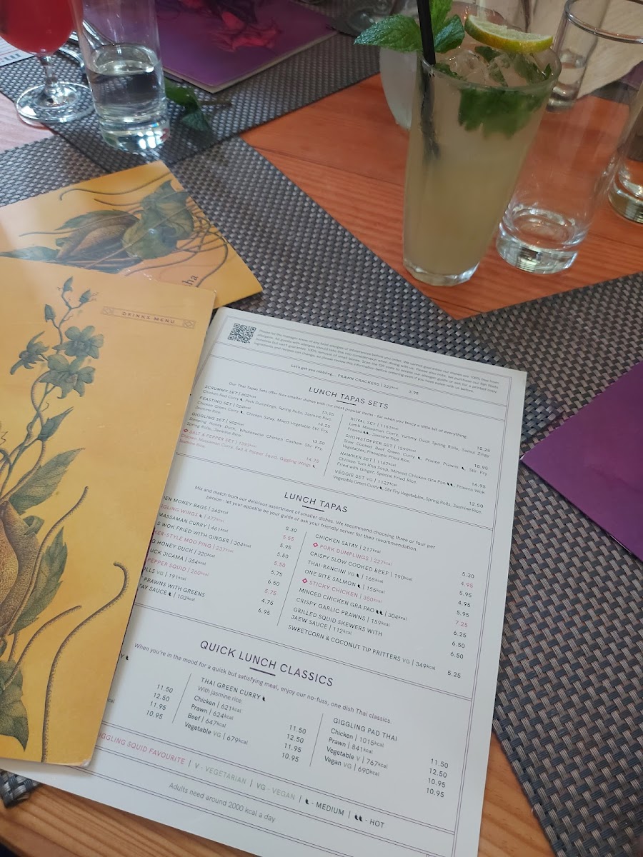 The menu at Giggling Squid in Harborne is a well-curated selection of Thai favorites, ranging from light starters to robust mains. Dishes like the Thai Fish Cakes and Salt & Pepper Squid offer a burst of flavor that excites the palate, with just the right balance of spices. For main courses, the Pad Thai and Massaman Curry are customer favorites, with the Pad Thai being perfectly stir-fried with tender chicken and a tangy, slightly sweet sauce that captures the essence of Thailand. The Massaman Curry stands out with its rich, creamy texture and balanced sweetness, making it a comforting choice for those who prefer a milder, yet flavorful dish.